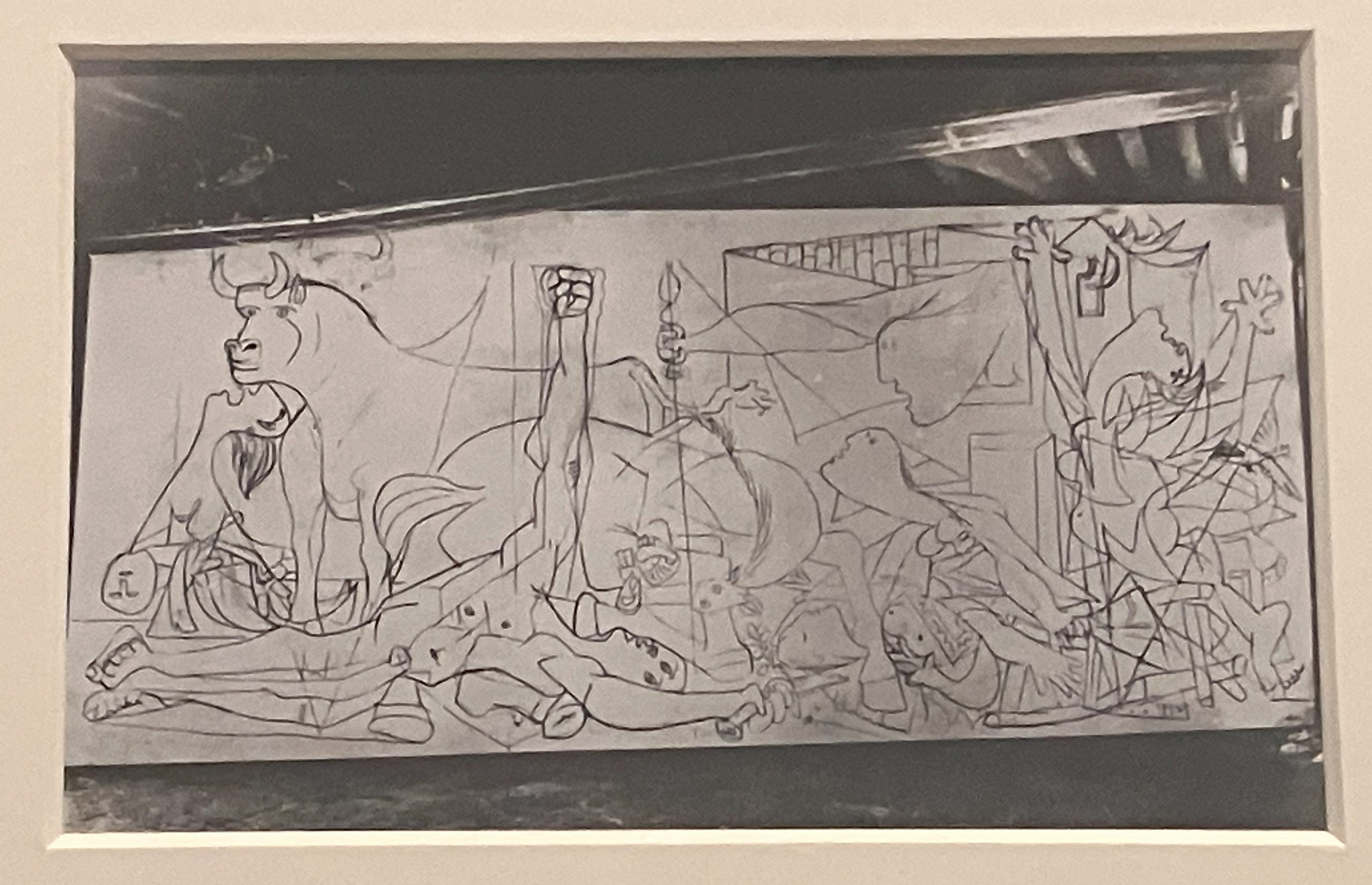 The photographs showed that Picasso had always included a bull. It was more realistic in the earlier versions, not photorealistic but neither obviously “cubist.” It seems to have been an important image from the start. (Later in my week in Madrid, I learned a little about Picasso’s use of bulls.)