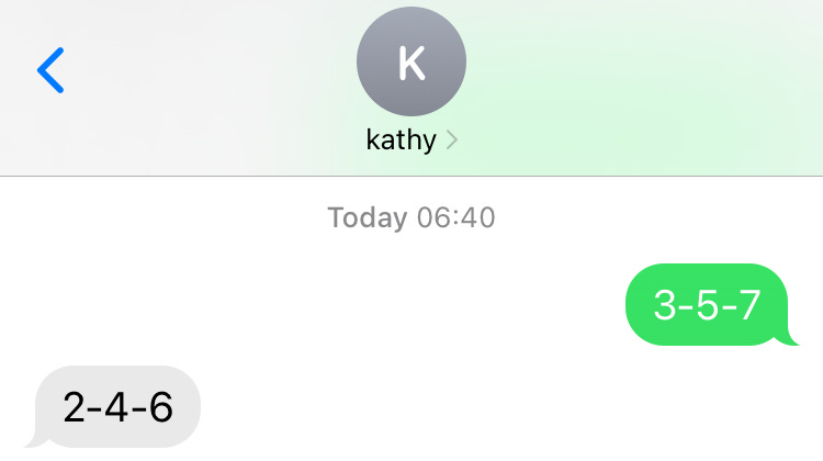 We have played these games “together.” We live in different states hundreds of miles apart. We play them, as the AI geeks would say, asynchronously. Sometimes I’ll forget and rush to play before bedtime. We have no particular rules between us, other than the understanding that you don’t spoil the other person’s play. Each day after playing, one of us will send the other a three-digit code, and sooner or later the other will respond in kind: