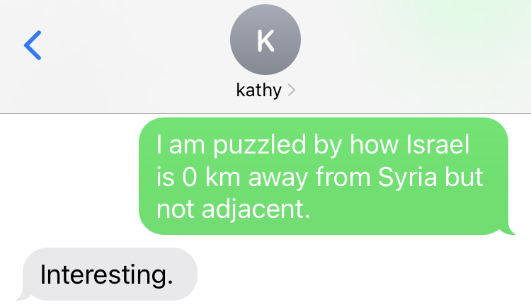 Two: Knowledge. Not in the obvious way. With Wordle, for example, it’s a pretty rare word that I can’t recognize. Even if COPSE shows up, I’ll be ready for it. But I might look up (and share) an etymology. And with the geography games, untold questions arise far beyond where nations are. Like the number of migrants in Qatar. Or, What is West Sahara? (which Worldle recognizes but Globle does not). Why is Suriname independent but French Guiana is not? Why is the main language of Equatorial Guinea Spanish, yet its currency is the Franc?